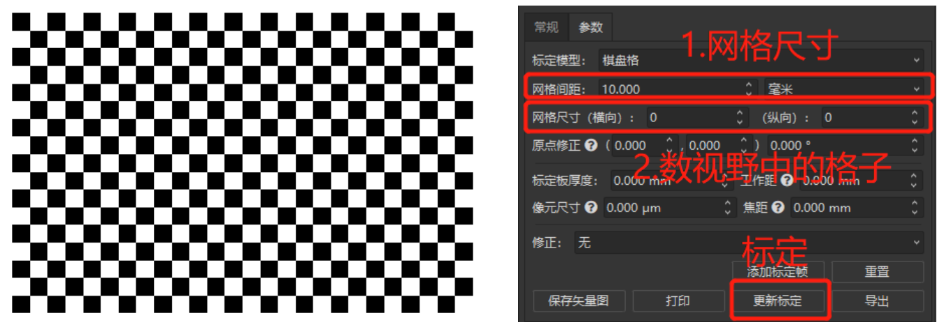 通過(guò)市場(chǎng)需求的調研,我們發(fā)現圖1中傳統棋盤(pán)格標定的流程比較復雜,用戶(hù)除了需要知道網(wǎng)格的尺寸以外,還要通過(guò)數的方式確定在相機視野中的網(wǎng)格數量來(lái)完成標定,如果實(shí)際應用場(chǎng)景中網(wǎng)格間距尺寸比較小,用戶(hù)很可能數錯導致最后標定失敗。