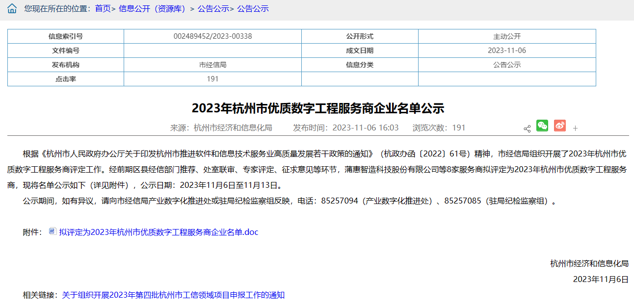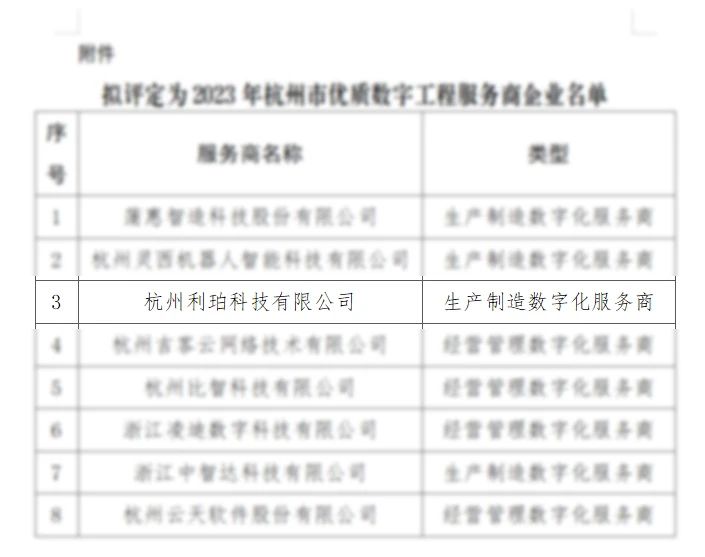 市經(jīng)信局組織開(kāi)展了2023年杭州市優(yōu)質(zhì)數字工程服務(wù)商評定工作,杭州利珀科技有限公司獲評杭州市優(yōu)質(zhì)數字工程服務(wù)商企業(yè)。