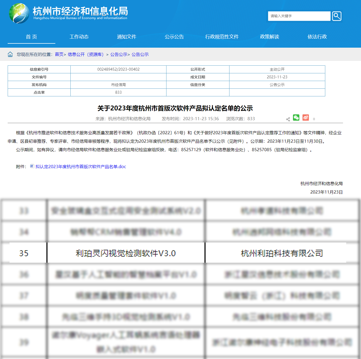 12月22日,經(jīng)企業(yè)申報、各市推薦、形式審查和專(zhuān)家評審,杭州利珀科技有限公司“利珀靈閃視覺(jué)檢測軟件V3.0”成功入選2023年度浙江省和杭州市首版次軟件產(chǎn)品認定名單。此次入選,標志著(zhù)利珀在軟件領(lǐng)域的再一次突破,技術(shù)優(yōu)勢以及研發(fā)成果獲得了省、市級專(zhuān)家的高度認可。