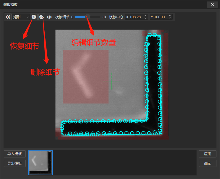 相機采圖或者導入本地圖片,在需要定位的位置添加模板匹配算法