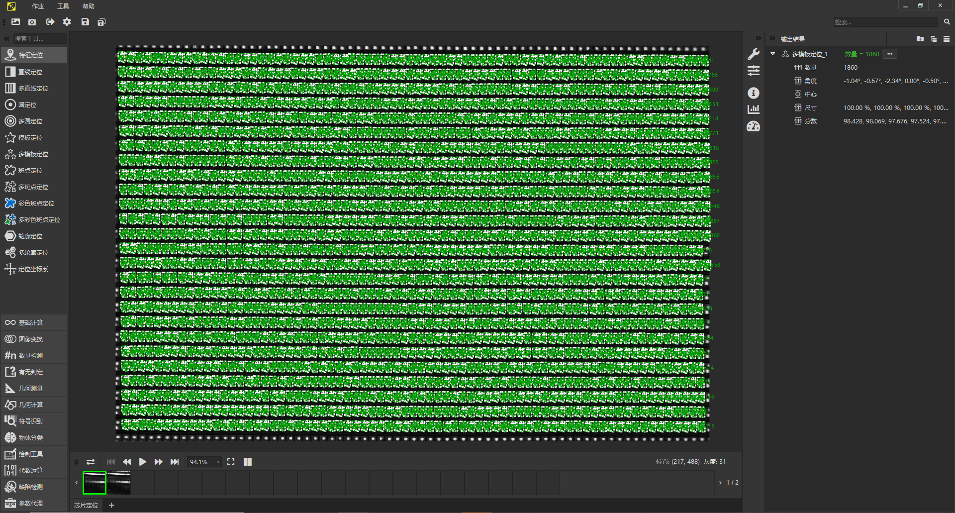 靈閃應用結果:重復測量誤差最大0.08個(gè)像素,均值0.0197個(gè)像素,同時(shí)對近2000顆芯片進(jìn)行定位,耗時(shí)100ms