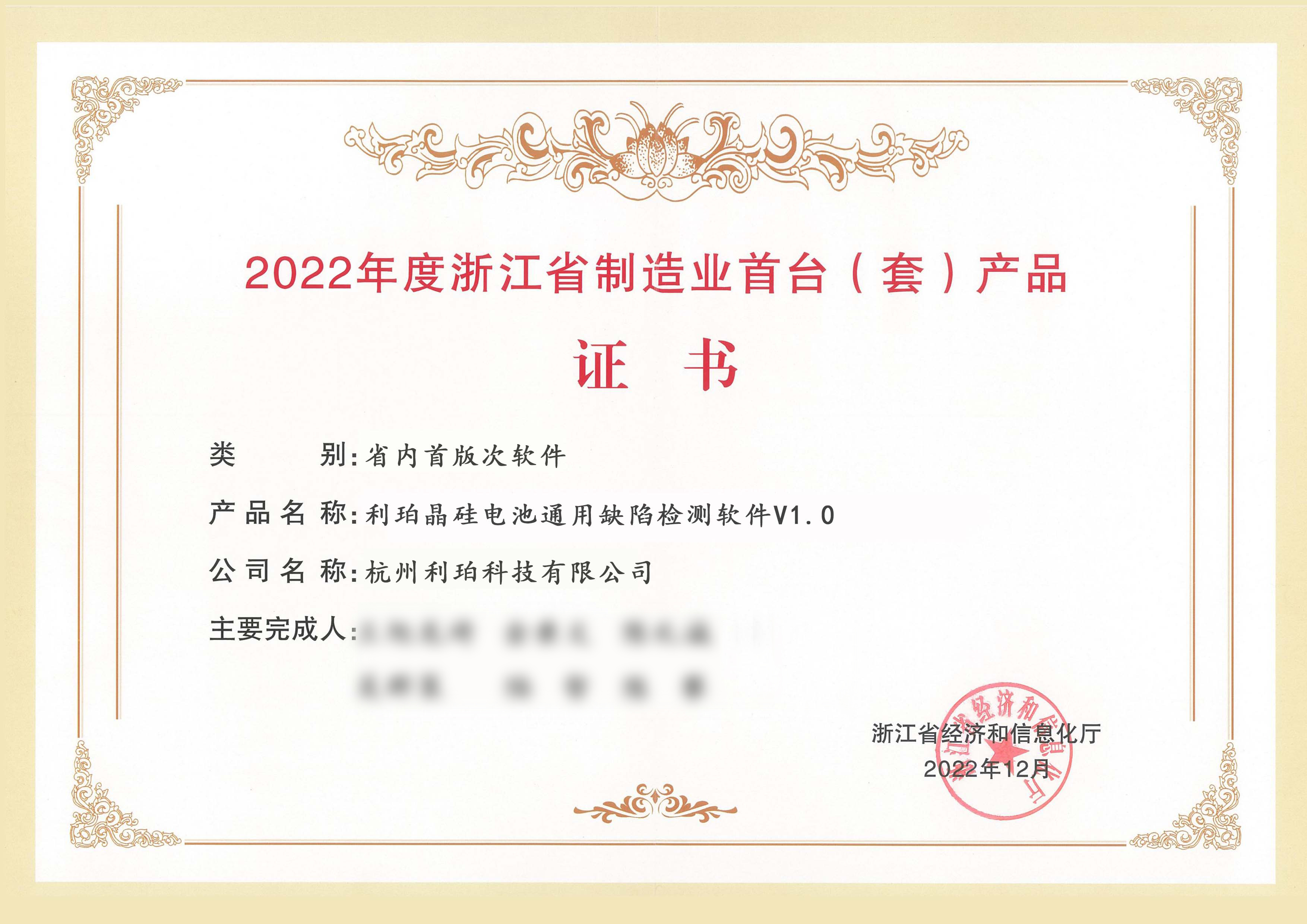 2022年度浙江省制造業(yè)首臺(套)產(chǎn)品證書(shū)