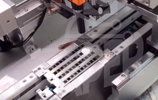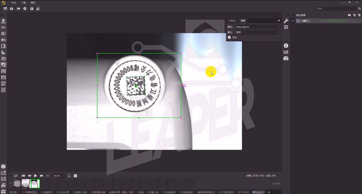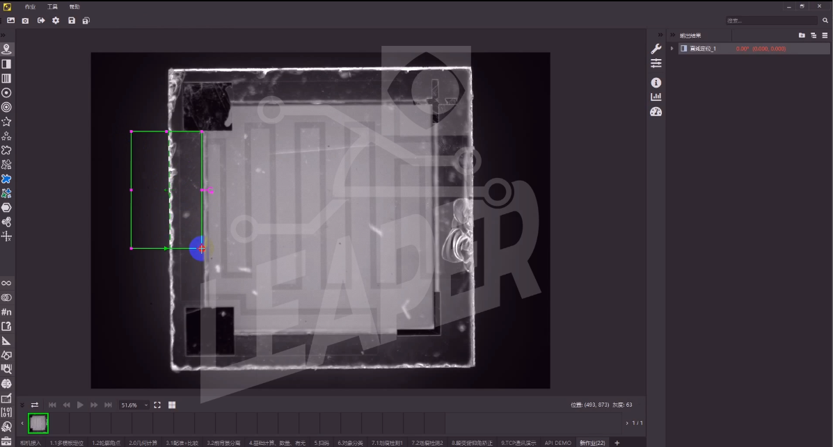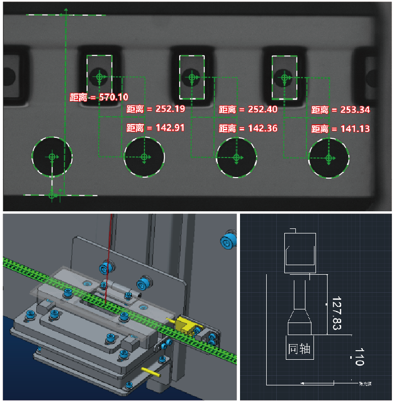 意義: 用高速高精度的視覺(jué)在線(xiàn)檢測代替耗時(shí)耗力的二次元離線(xiàn)檢測設備。精度±0.01mm,載帶運動(dòng)速度13.4m/s
