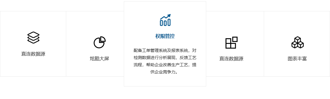 報表分析,反饋工藝流程:配備工單管理系統及報表系統,對檢測數據進(jìn)行分析展現,反饋工藝流程,幫助企業(yè)改善生產(chǎn)工藝,提供企業(yè)競爭力。